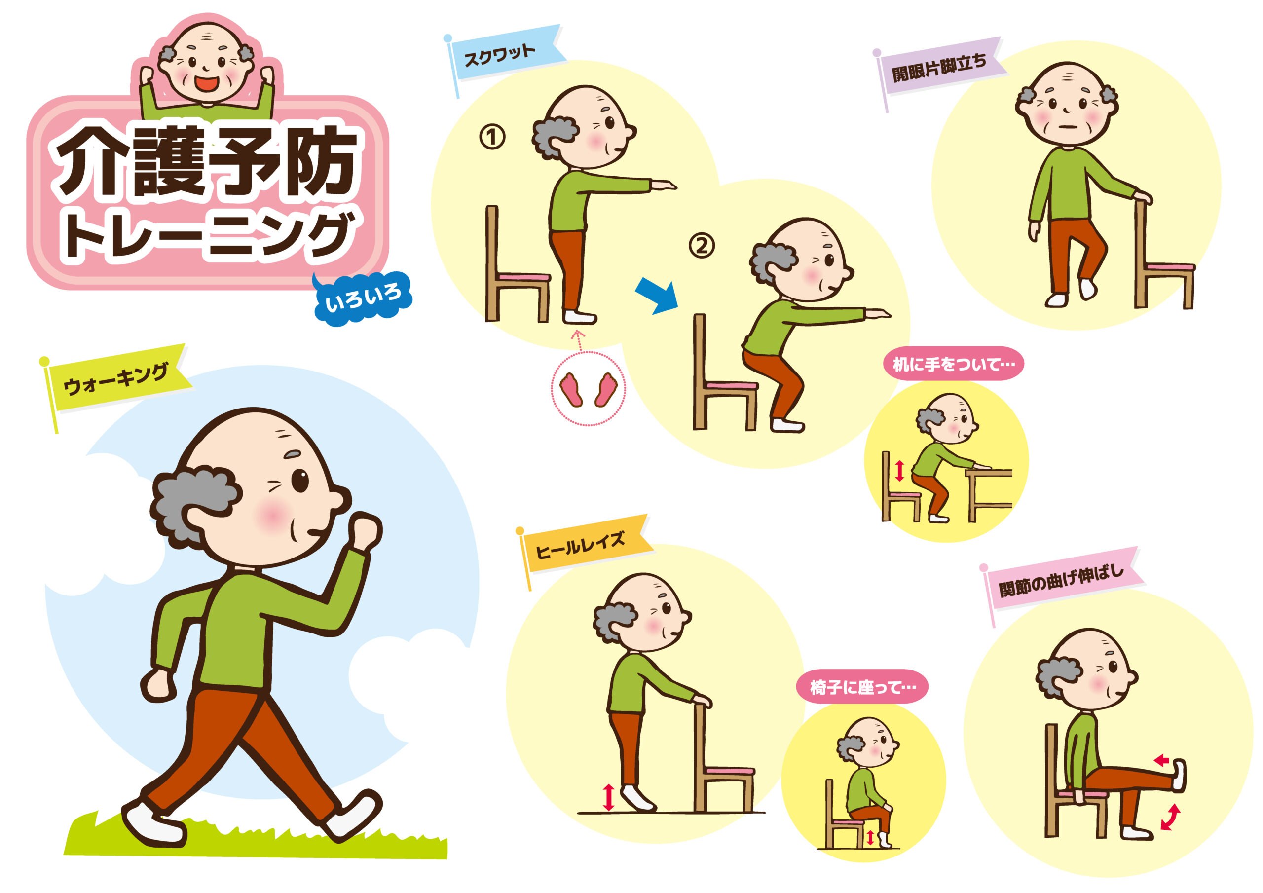 フレイルやロコモ予防に役立つ多彩な運動イラスト。楽しみながら健康習慣をサポート