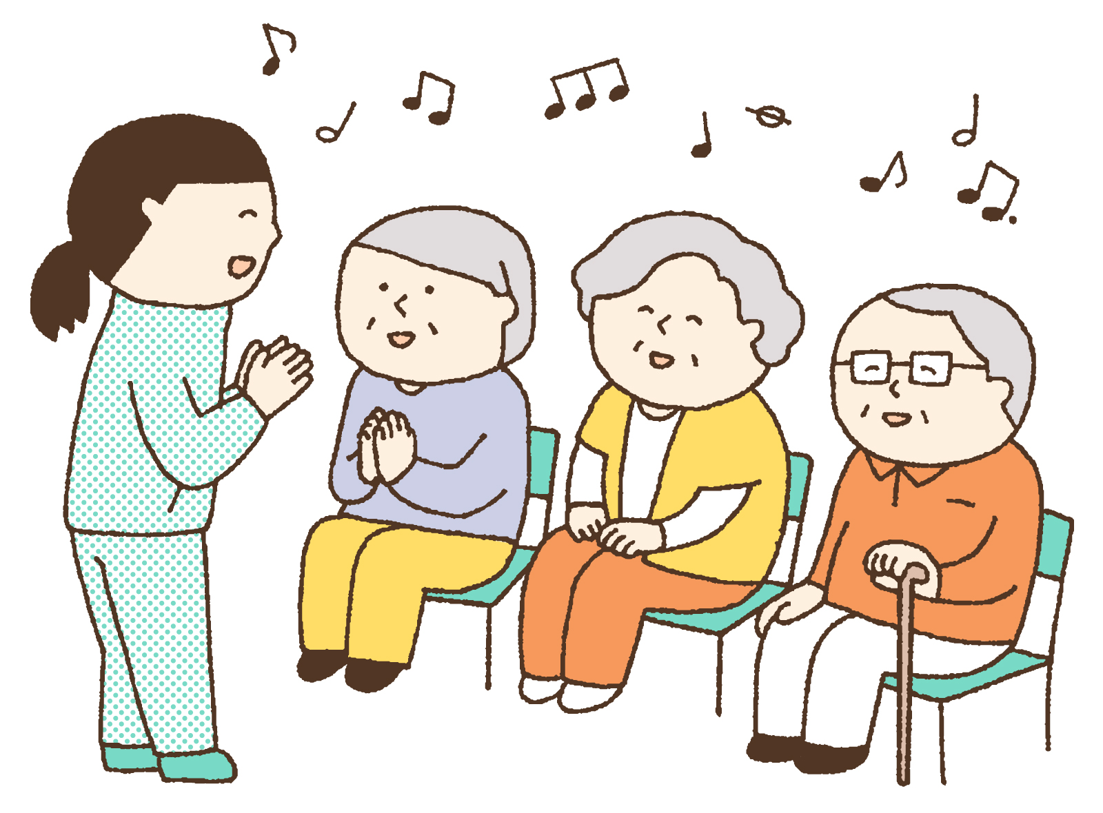 笑顔あふれる歌の時間。社交ダンス療法と一緒に、心も体も元気に