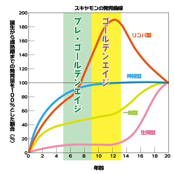 ゴールデンエイジにあわせた運動が効果的。スキャモンの発育曲線で体の成長の特徴を確認できます。